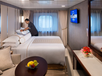 Kajuty: Club Interior, Club Oceanview a Club Veranda. V každej kajute sa nachádza: dve lôžka prestaviteľné na manželskú posteľ typu Queen, TV s plochou obrazovkou, minibar, klimatizáciu s termostatom, telefón s priamou voľbou a hlasovou poštou, písací stôl, trezor, sušič na vlasy, USB porty, froté župany a papuče, košík ovocia v deň nalodenia na privítanie, čerstvé kvety, pohodlnú tašku, zapožičanie dáždnika a ďalekohľadu, čistenie obuvi a denný spravodajský bulletin. Niektoré vonkajšie Oceanview kajuty majú i gauč. Veranda kajuty majú aj obývaciu časť a balkón.