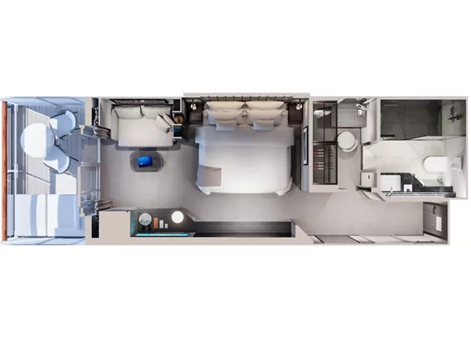 | Ocean Suites - Ocean Grand Terrace Suite Suita 28 m² + kúpeľňa 4 m² + terasa so sedením a pohovkou 11 m². 6/7. paluba. Spálňa s obývacou časťou, šatník. Minibar, kávovar, vodná kanvica, ďalekohľad, sejf, kúpeľňa so sprchou. Fľaša šampanského na privítanie. 6, 7. paluba. Maximálna kapacita 2 dospelé osoby + 1 dieťa do nedovŕšených 18 rokov. | 5 985 € 5 985 € za osobu | ||