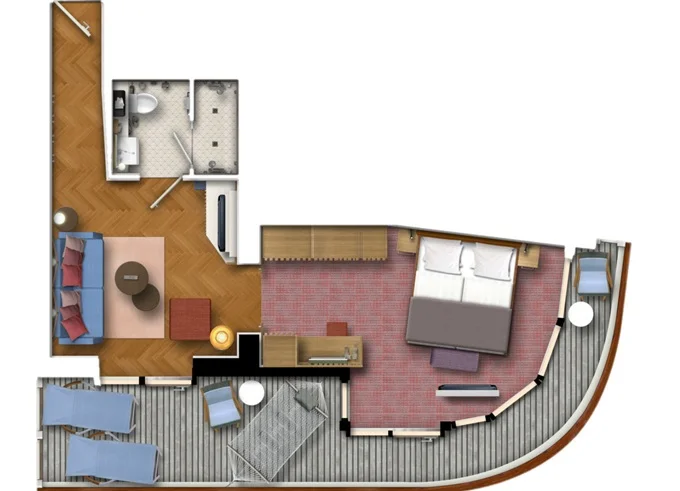 | SKSO - Übersee Suite 40 m² + balkón 9 m² s ležadlami a hojdacou sieťou. 14. paluba. Max 4 osoby. Výhody Suite. | 13 498 € 6 749 € za osobu |