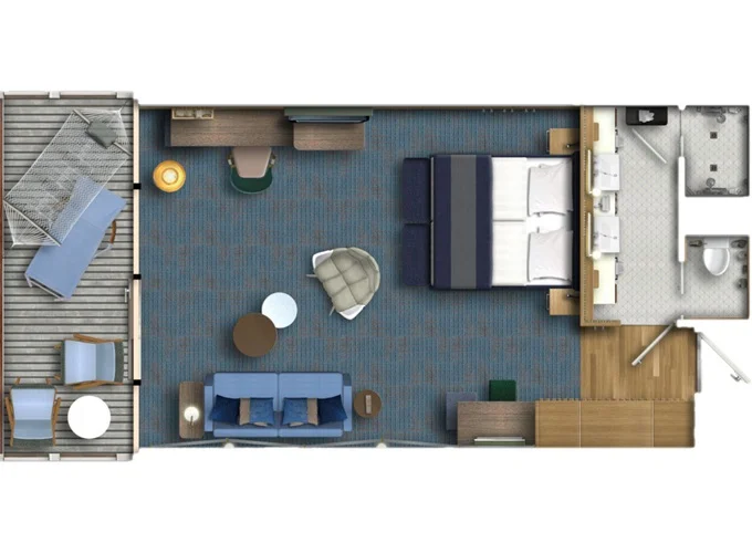 | SKSO - Übersee Suite 40 m² + balkón 9 m² s ležadlami a hojdacou sieťou. 14. paluba. Max 4 osoby. Výhody Suite. | 16 596 € 4 149 € za osobu |