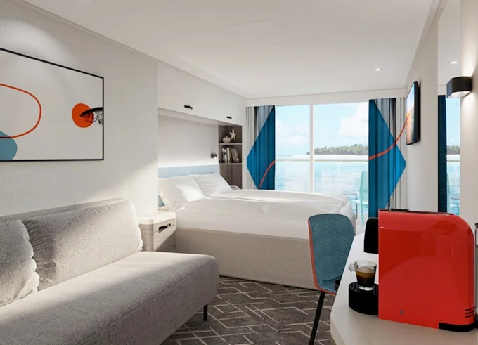 BAUS - PLUS Kajuta s balkónom 17 m² + balkón 5 m². Max 4 osoby. Cenový model PLUS. 6 796 € 1 699 € za osobu